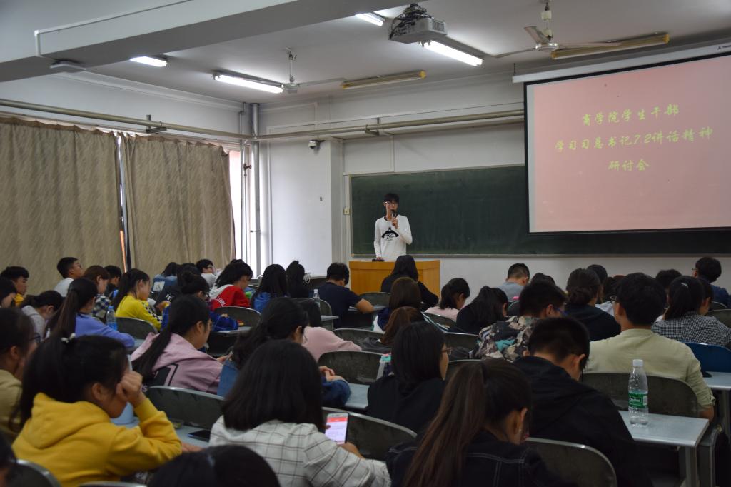 9月27日中午,为深入学习习总书记“7.2”讲话精神,开云官网于金明综合楼7204教室举办了习总书记“7.2”重要讲话精神专题学习活动及党史国情知识竞赛活动。学院2017、2018级全体学生干部参加了此次活动,活动由团委组织部部长张诚主持。 首先,与会人员观看习总书记讲话视频。习总书记的讲话充分肯定了共青团工作取得的成绩,明确了新时代青年的职责,让同学们深刻感受到了习总书记对当代中国青年的殷切期望。 ...